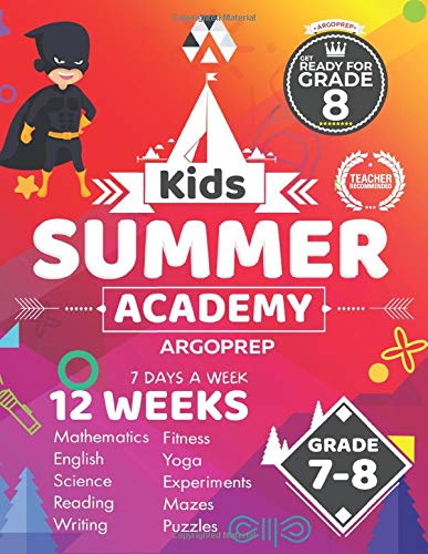 Prepare your child for Grade 8 with our award-winning Kids Summer Academy workbook by ArgoPrep. The Kids Summer Academy Series is designed to keep students engaged and prevent summer learning loss. More importantly, students are introduced to Grade 8 concepts so they can be one step ahead when they start their school year. Students will be able to review and practice English Language Arts, Mathematics, Science, Writing and more! ArgoPrep is a trusted brand used by teachers, parents and students nationwide. Kids Summer Academy series by ArgoPrep has been carefully crafted by state certified teachers and educators to provide your child with high-quality content and material to prepare for the new school year. In addition, all of our workbooks come equipped with video explanations that you can access for free on our website at This workbook includes: 12 weeks of curriculum Prevent summer learning loss and get ready for Grade 8 Includes Reading, Math, Science, Fitness, Yoga, Logic, and Puzzles Detailed video explanations accessible on our website from anywhere Our workbook has been carefully designed and crafted by licensed teachers to give students an incredible learning experience. Students start off the week with English activities followed by Math practice. Throughout the week, students have several fitness activities to complete. Making sure students stay active is just as important as practicing mathematics. We introduce yoga and other basic fitness activities that any student can complete. Each week includes a science experiment which sparks creativity and allows students to visually understand the concepts. On the last day of each week, students will work on a fun puzzle. ArgoPrep is one of the leading providers of supplemental educational products. Give your child the education they deserve!